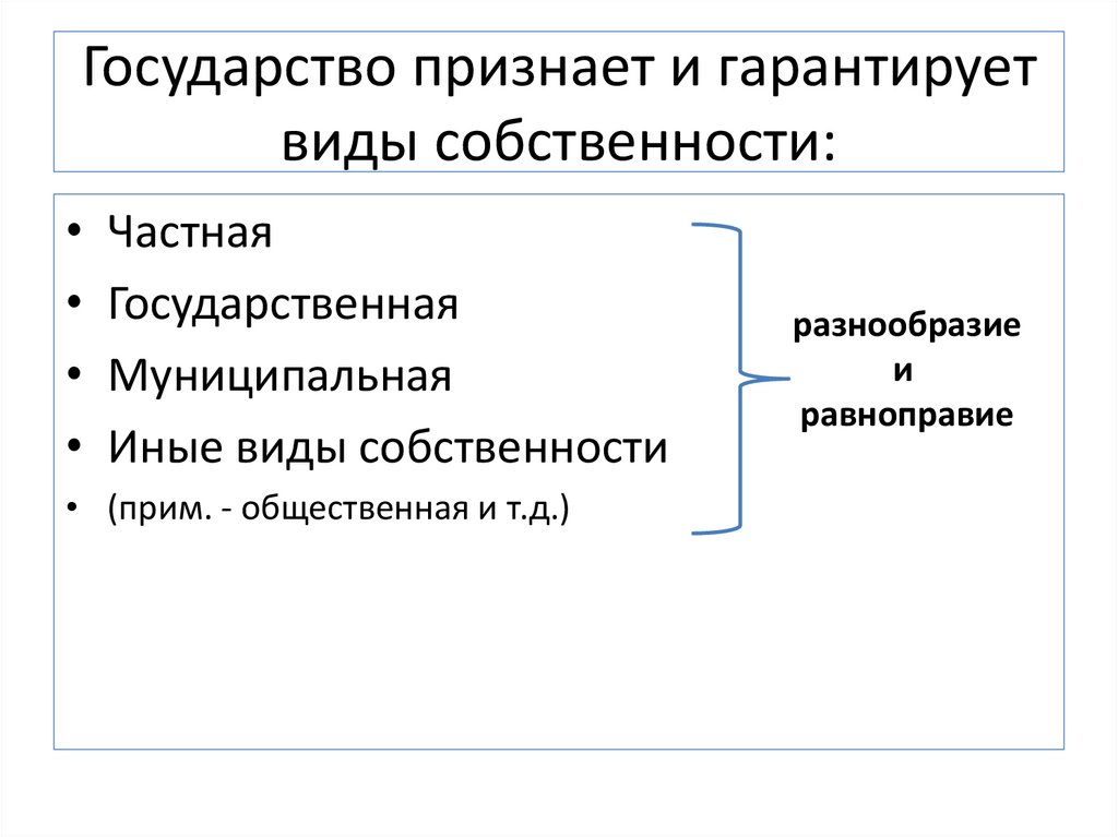 Государство признает и гарантируетвиды собственности: