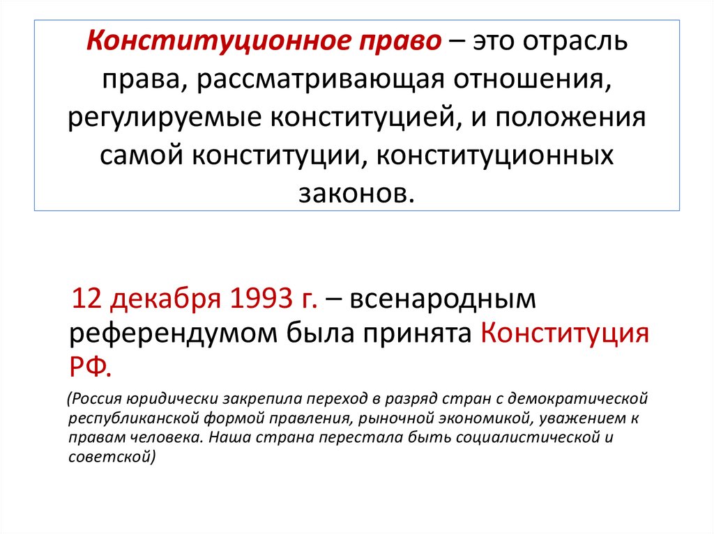Конституционное право – это отрасльправа, рассматривающая отношения,
