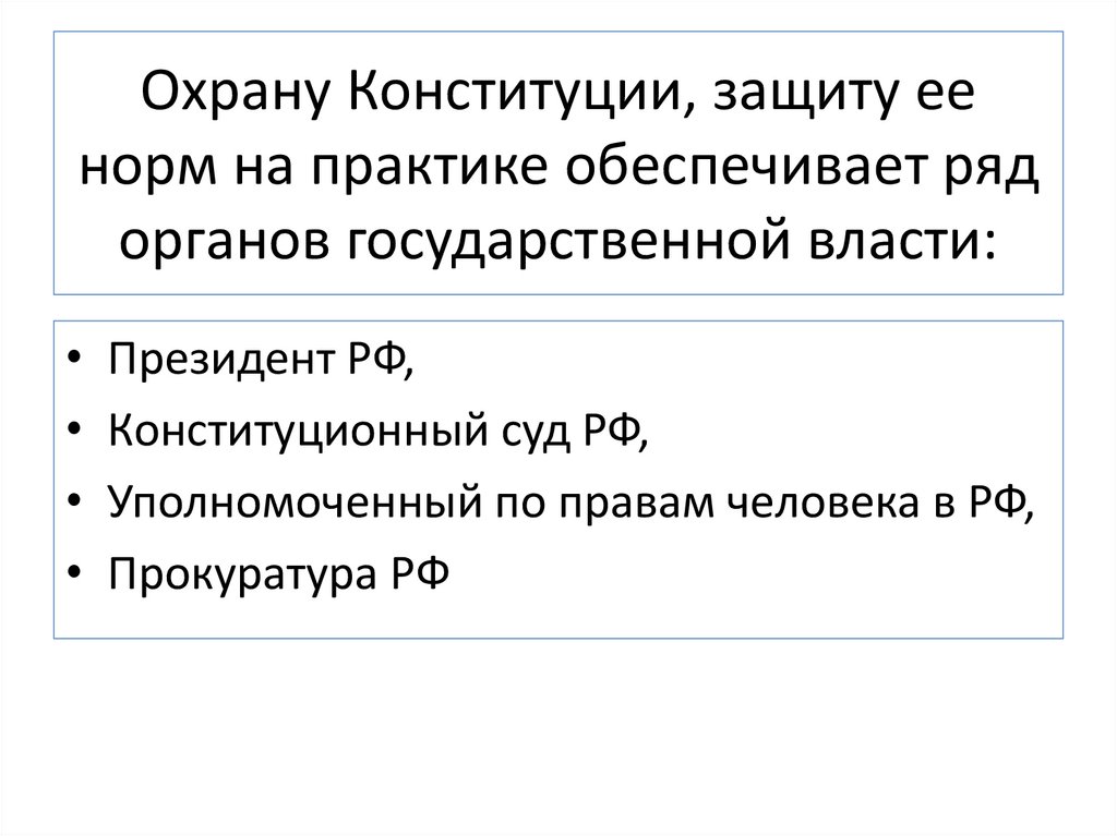 Охрану Конституции, защиту еенорм на практике обеспечивает ряд