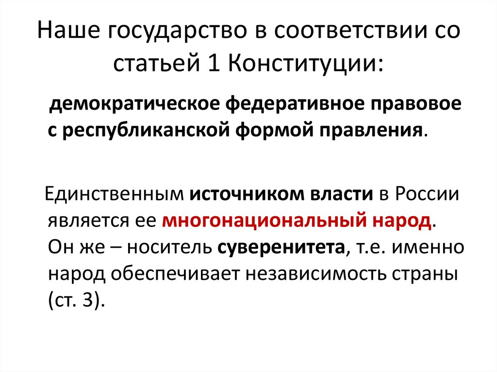 Наше государство в соответствии состатьей 1 Конституции: