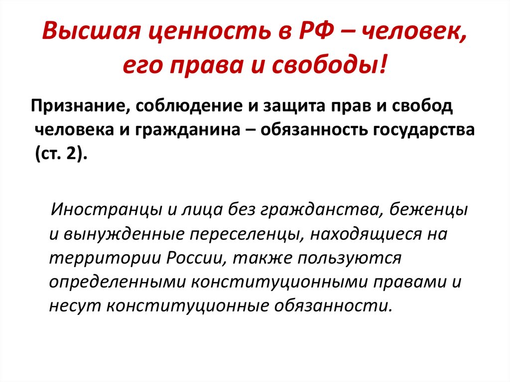 Высшая ценность в РФ – человек,его права и свободы!