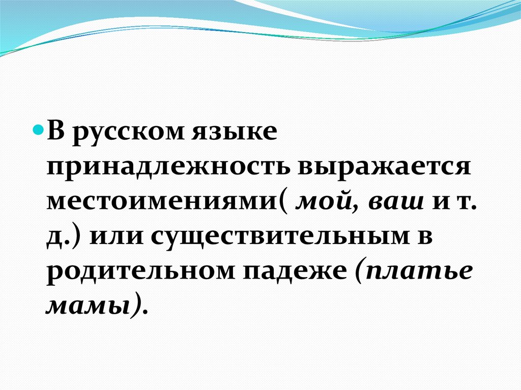 В русском языкепринадлежность выражается