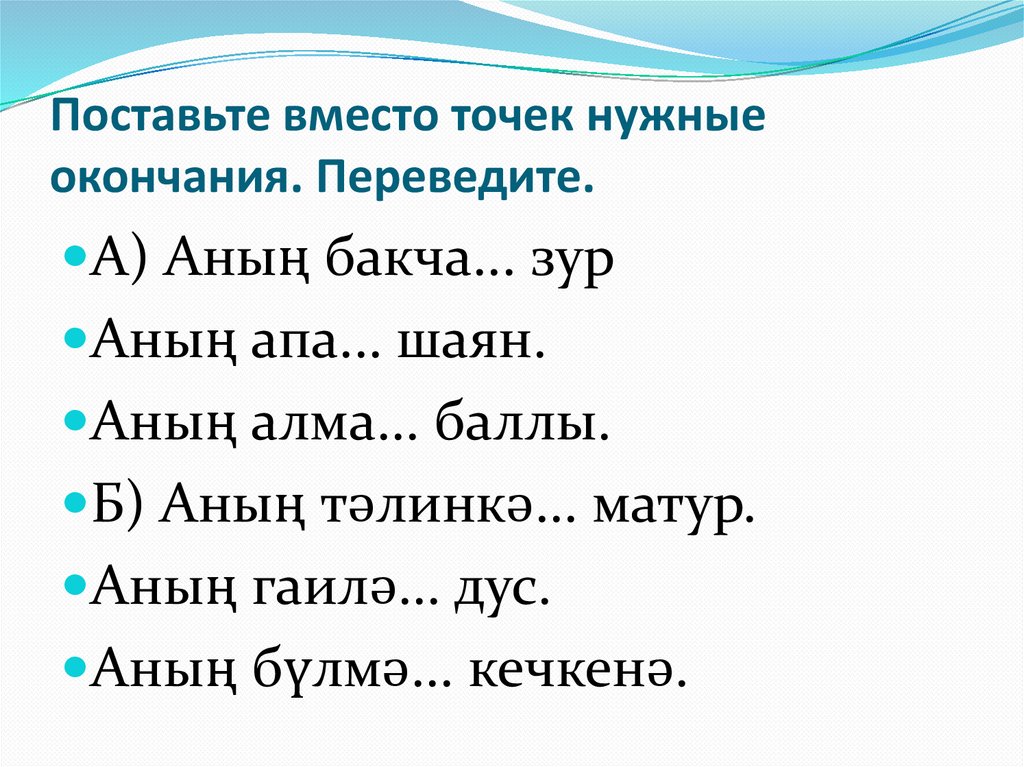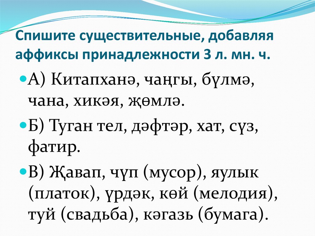 Б) Туган тел, дәфтәр, хат, сүз,