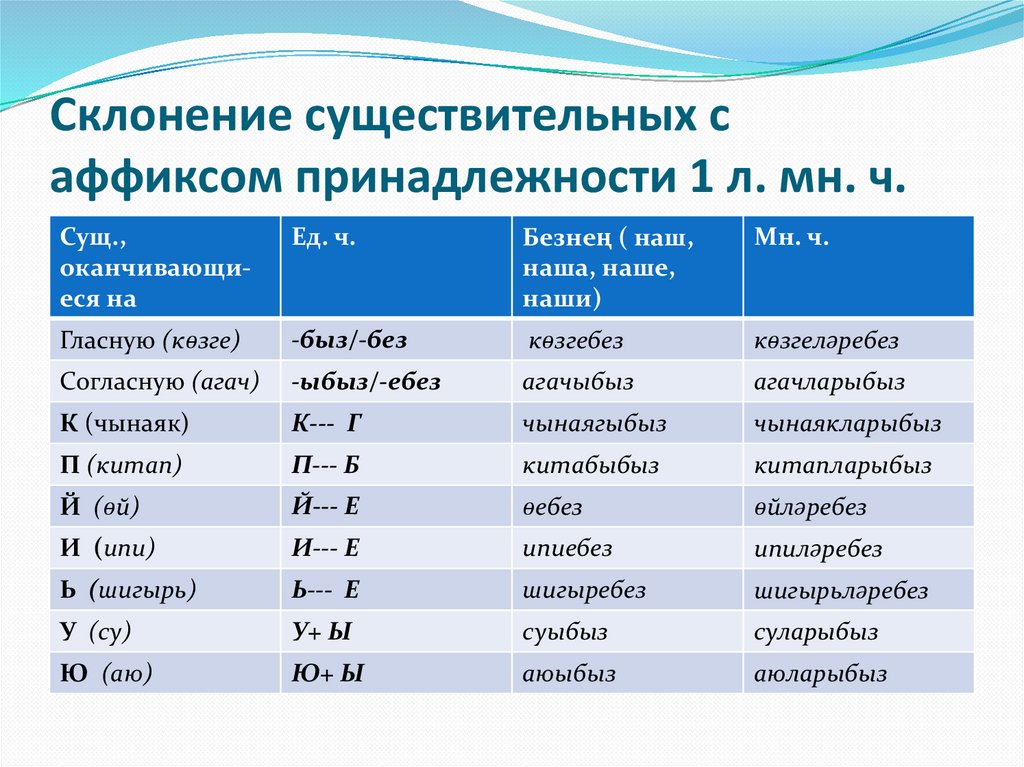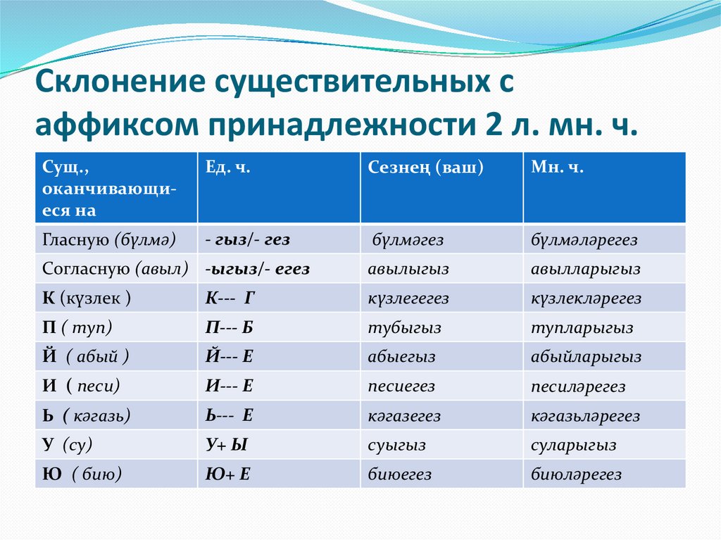 Склонение существительных саффиксом принадлежности 2 л. мн. ч.