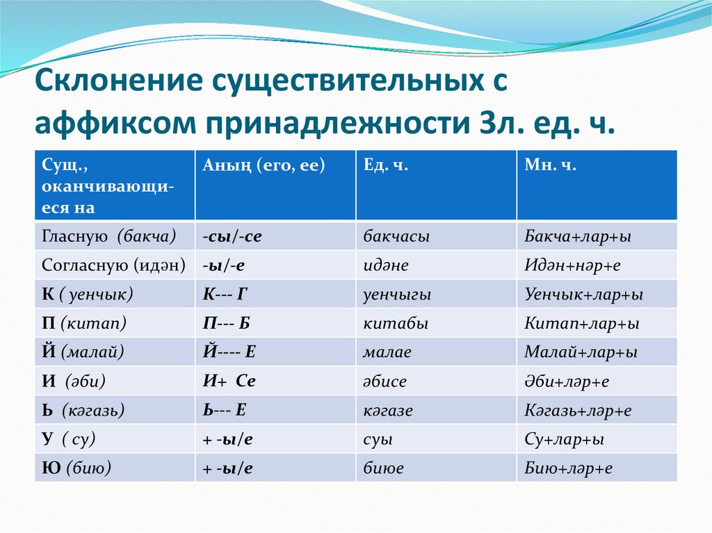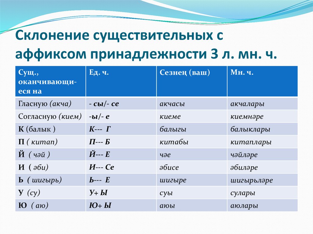 Склонение существительных саффиксом принадлежности 3 л. мн. ч.