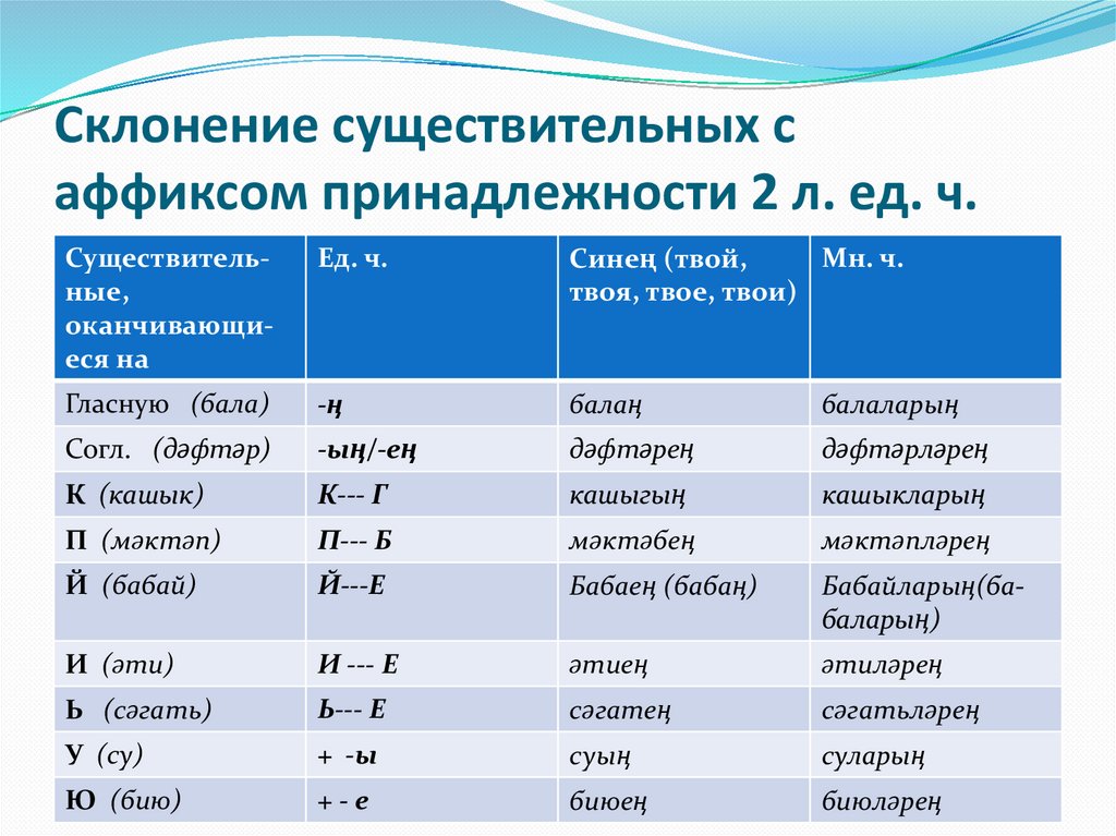 Склонение существительных саффиксом принадлежности 2 л. ед. ч.