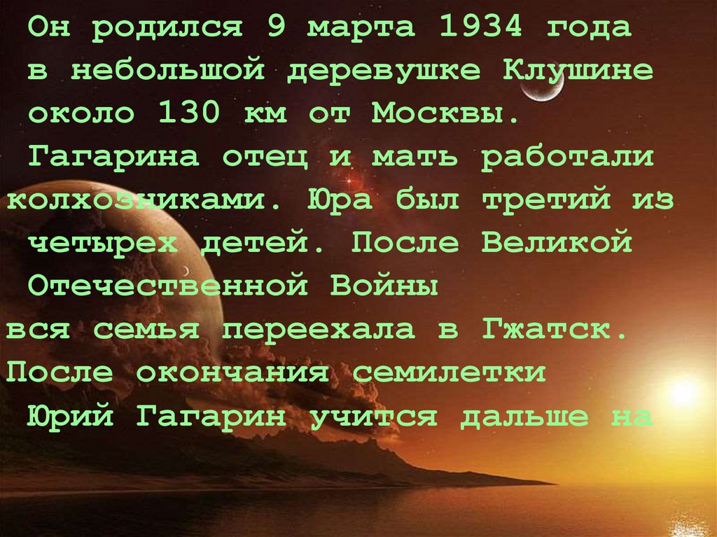 Гагарина отец и мать работали