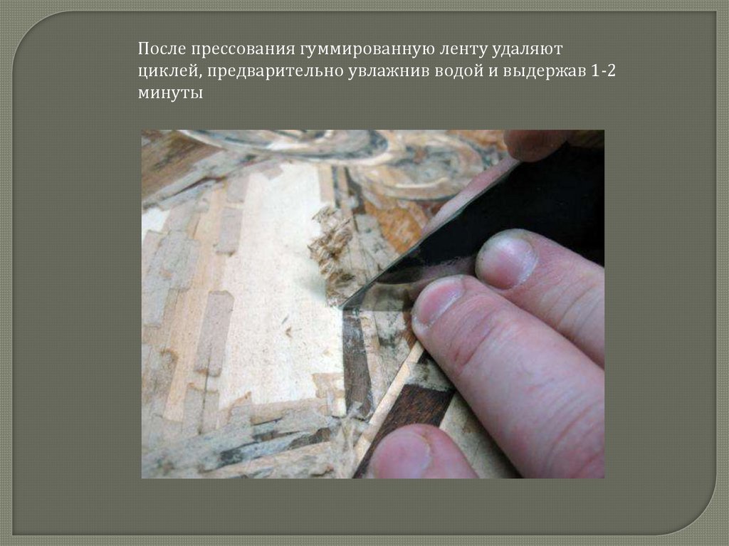 После прессования гуммированную ленту удаляютциклей, предварительно увлажнив водой и выдержав 1-2