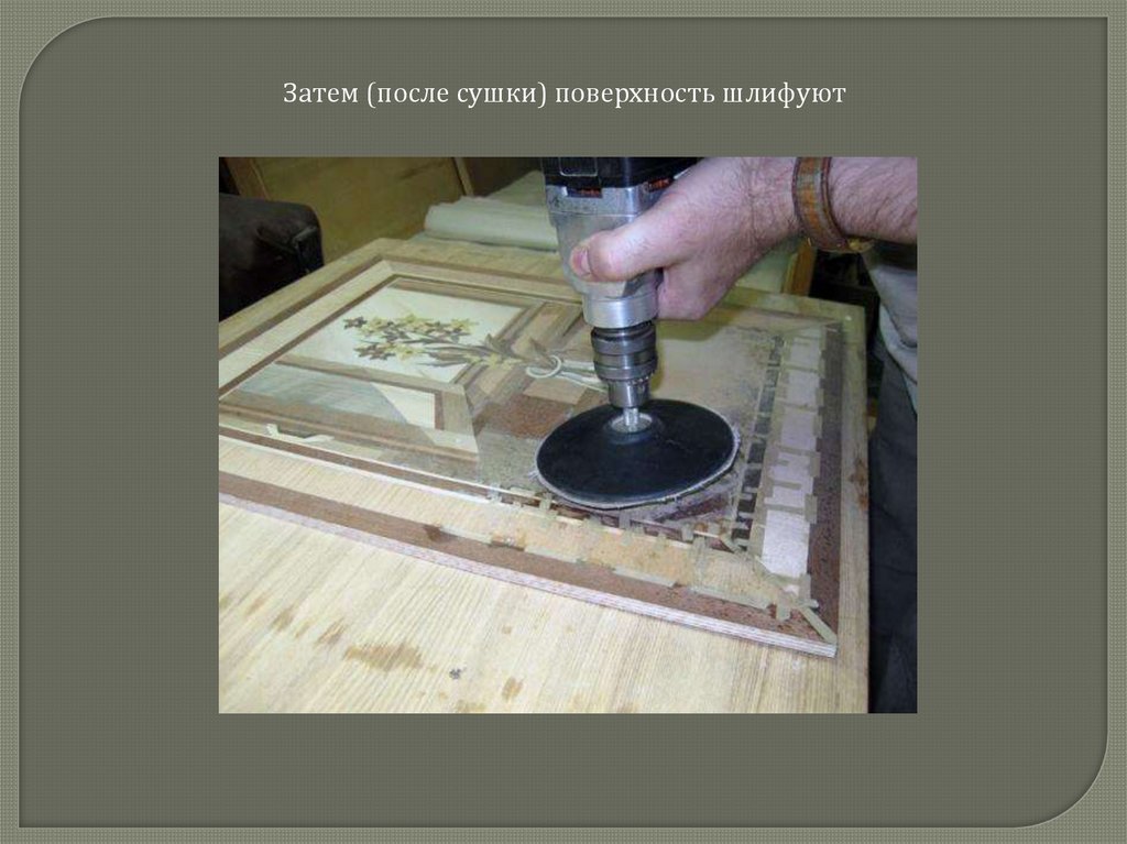 Затем (после сушки) поверхность шлифуют11.