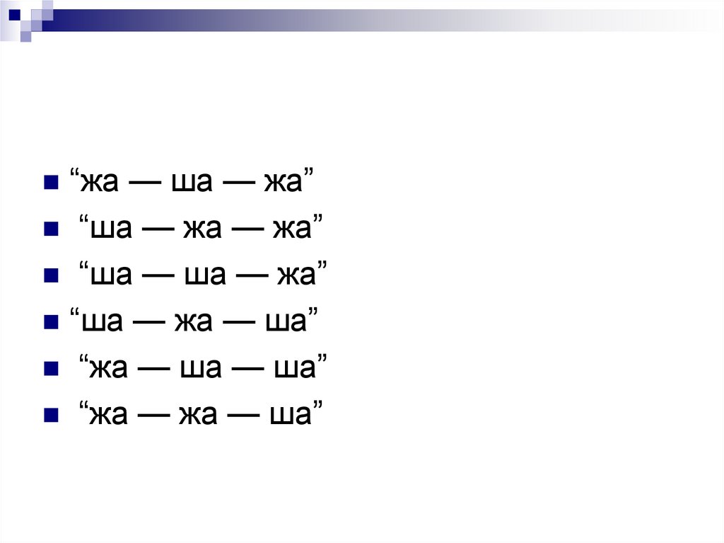 “шу — шу — шу” (“жу — жу — жу”)“ша — ша — ша”