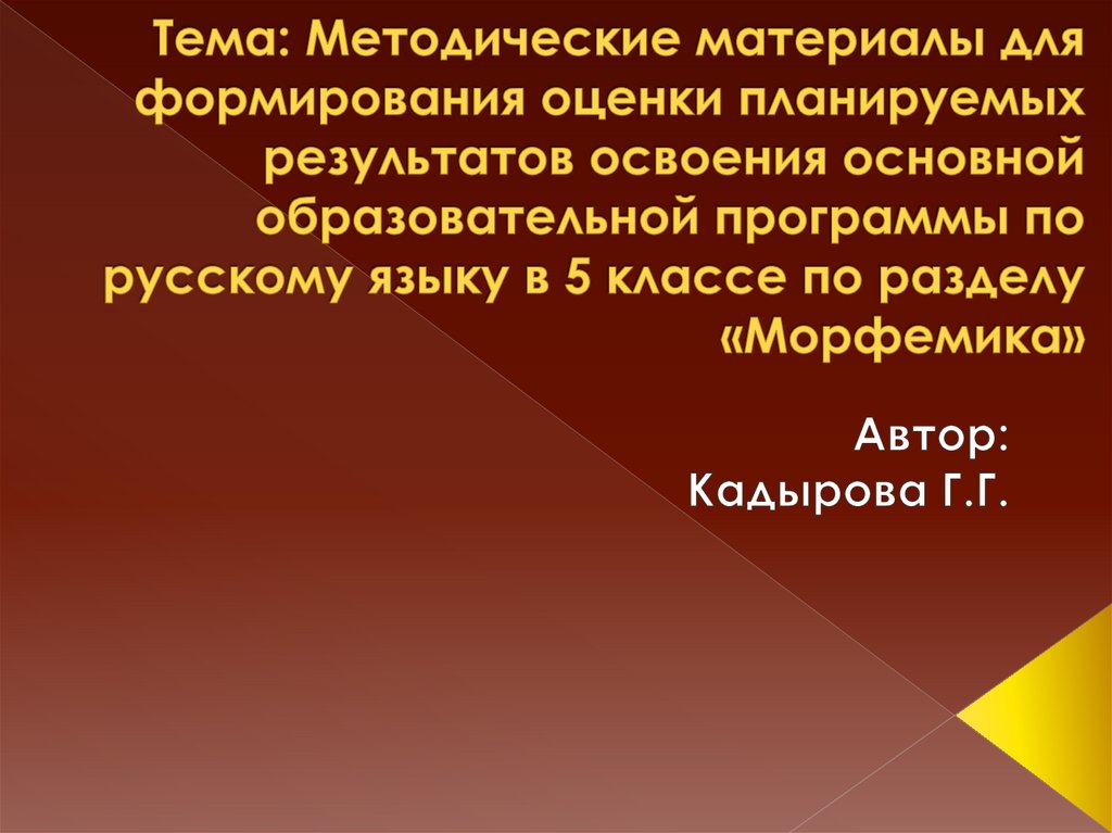 Методические материалы для формирования оценки планируемых результатов по разделу «Морфемика» (5 класс)