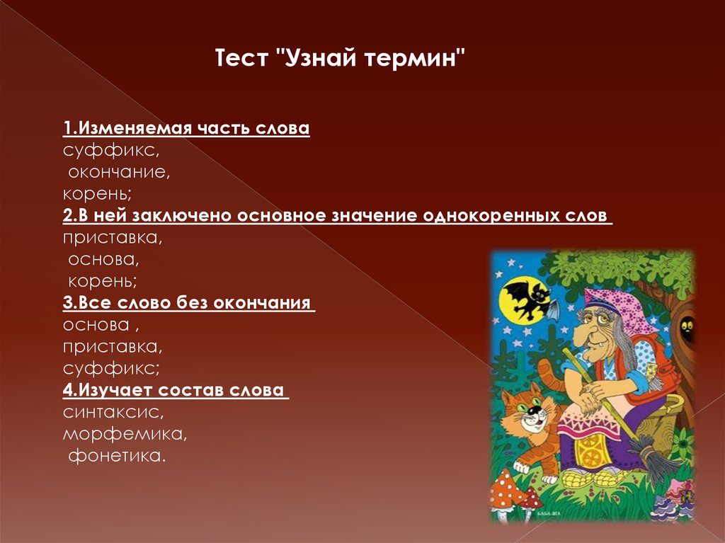 1. Раздел лингвистики, изучающий состав (строение) слова – (морфемика)