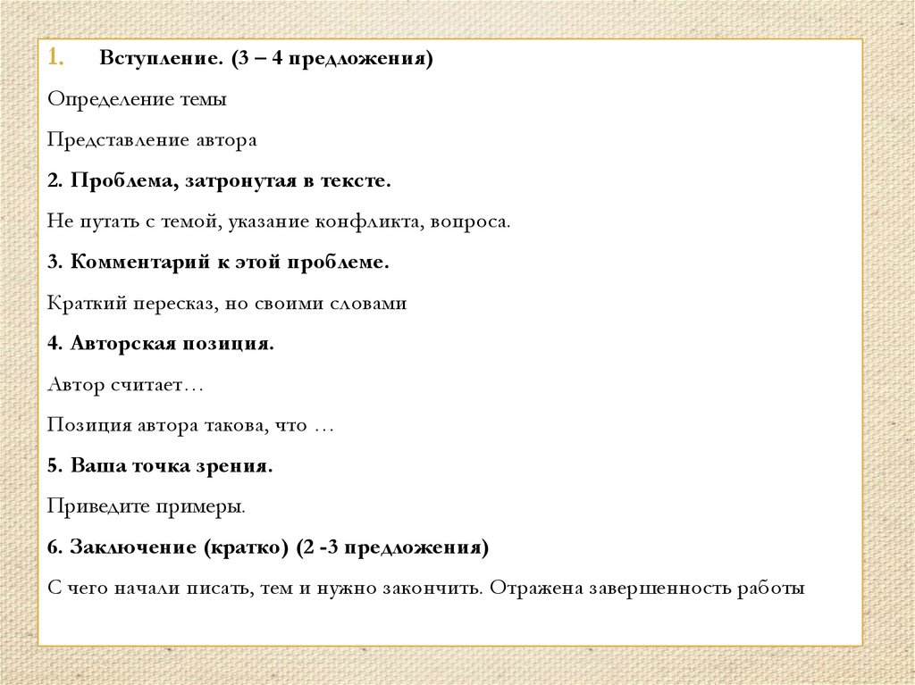 1.Вступление. (3 – 4 предложения)