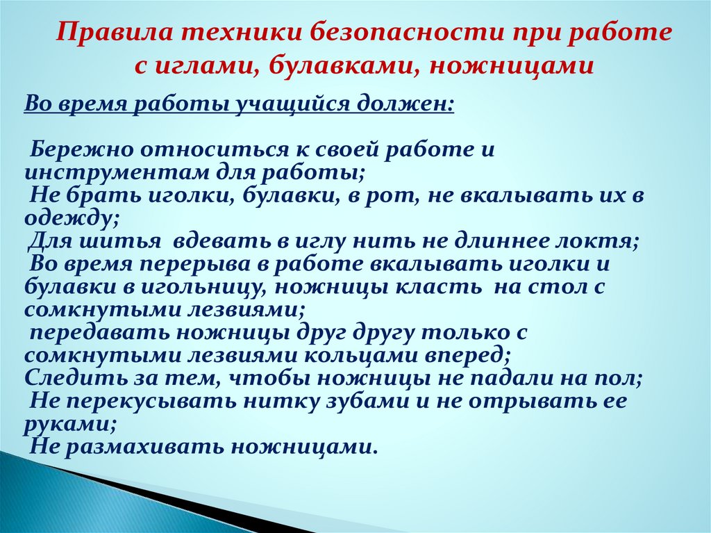 Правила техники безопасности при работес иглами, булавками, ножницами