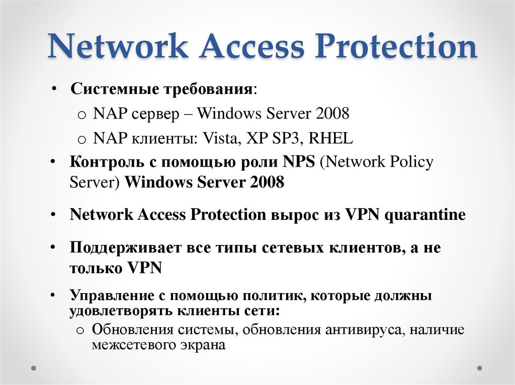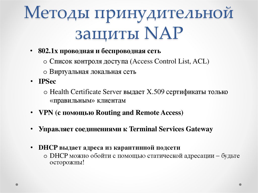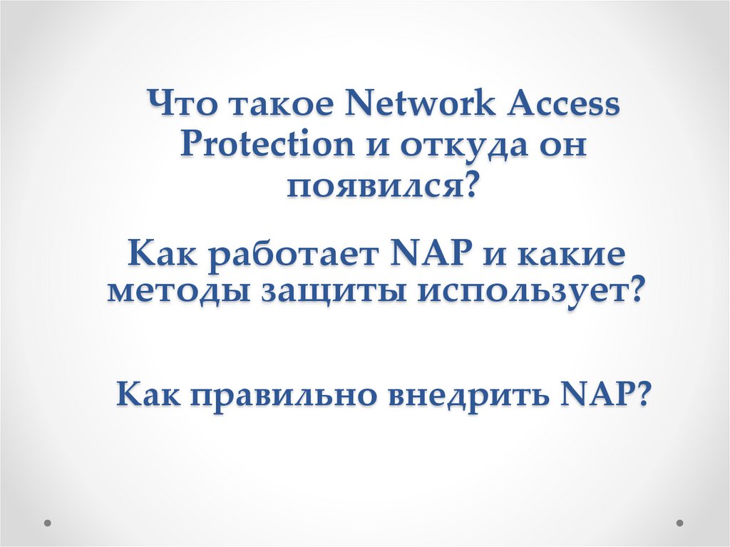 Этапы внедрения NAP• Наблюдение и отчеты (Reporting Mode)