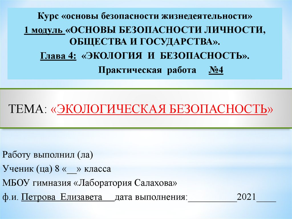 Практическая работа №4 по курсу«основы безопасности жизнедеятельности»