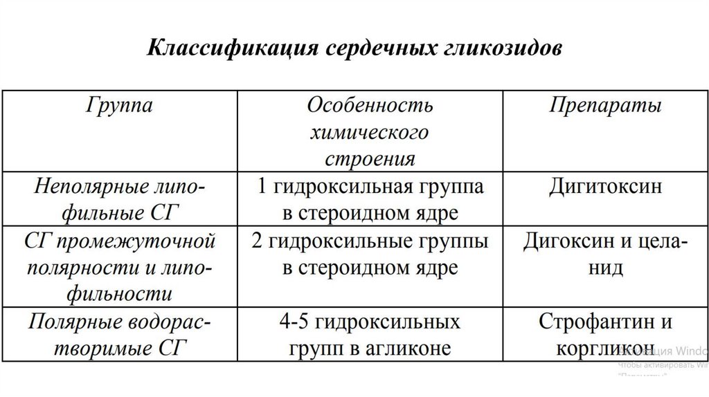 Показания к применению сердечных гликозидов исходя из особенностей фармакокинетики и фармакодинамики отдельных препаратов