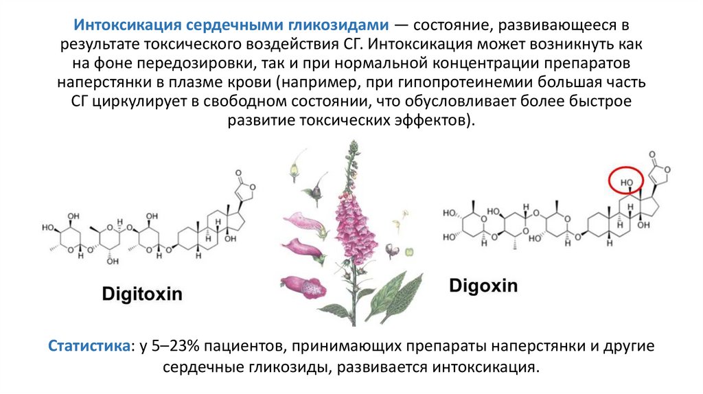 Интоксикация сердечными гликозидами — состояние, развивающееся врезультате токсического воздействия СГ. Интоксикация может возникнуть как