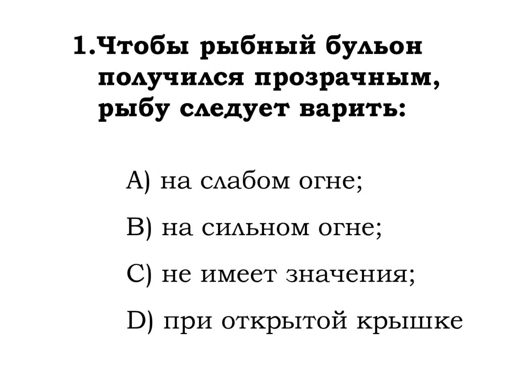 1.Чтобы рыбный бульонполучился прозрачным,