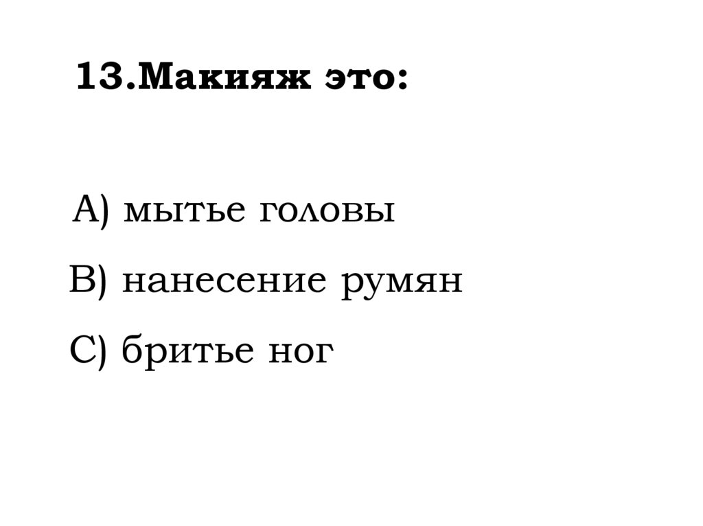 13.Макияж это:A) мытье головы