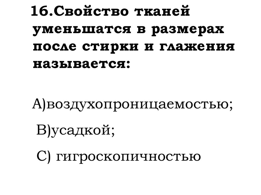 16.Свойство тканейуменьшатся в размерах