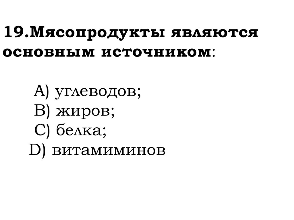 19.Мясопродукты являютсяосновным источником: