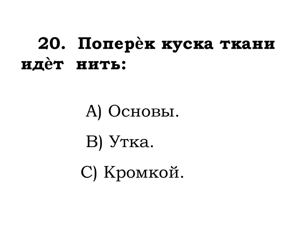 20. Поперѐк куска тканиидѐт нить: