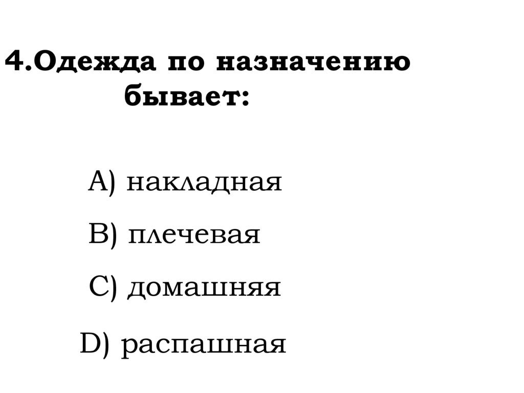4.Одежда по назначениюбывает: