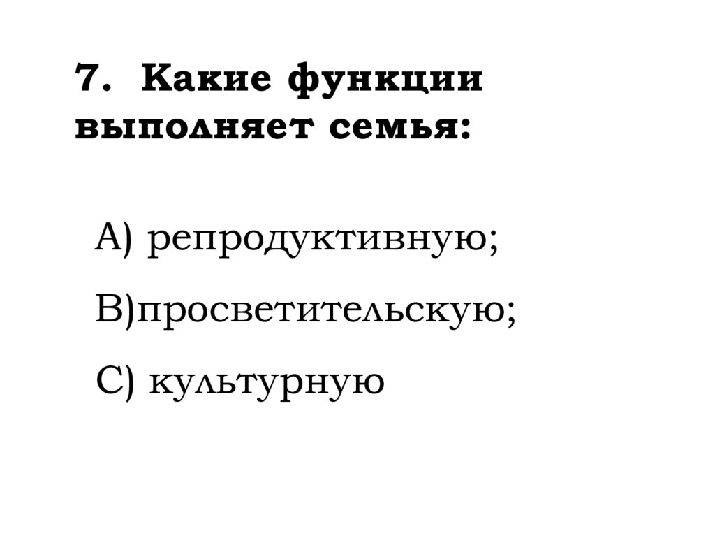 7. Какие функциивыполняет семья:
