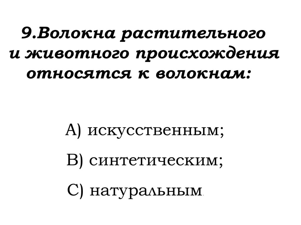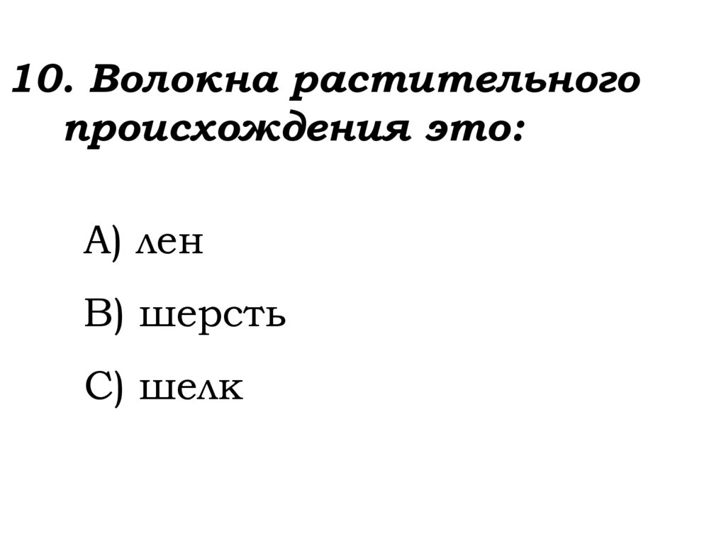 10. Волокна растительногопроисхождения это: