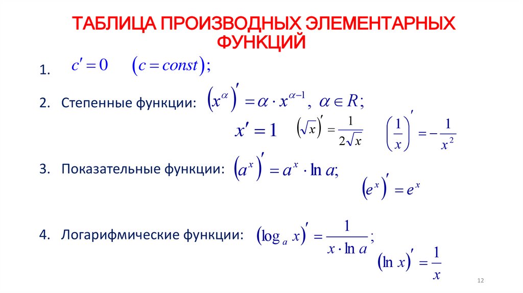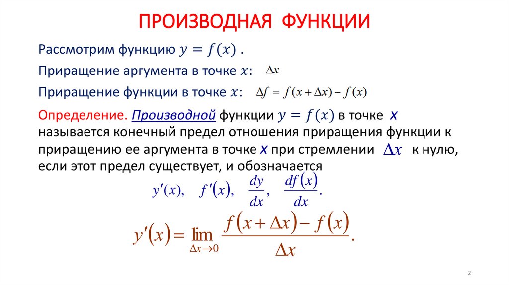 ПРОИЗВОДНАЯ ФУНКЦИИ