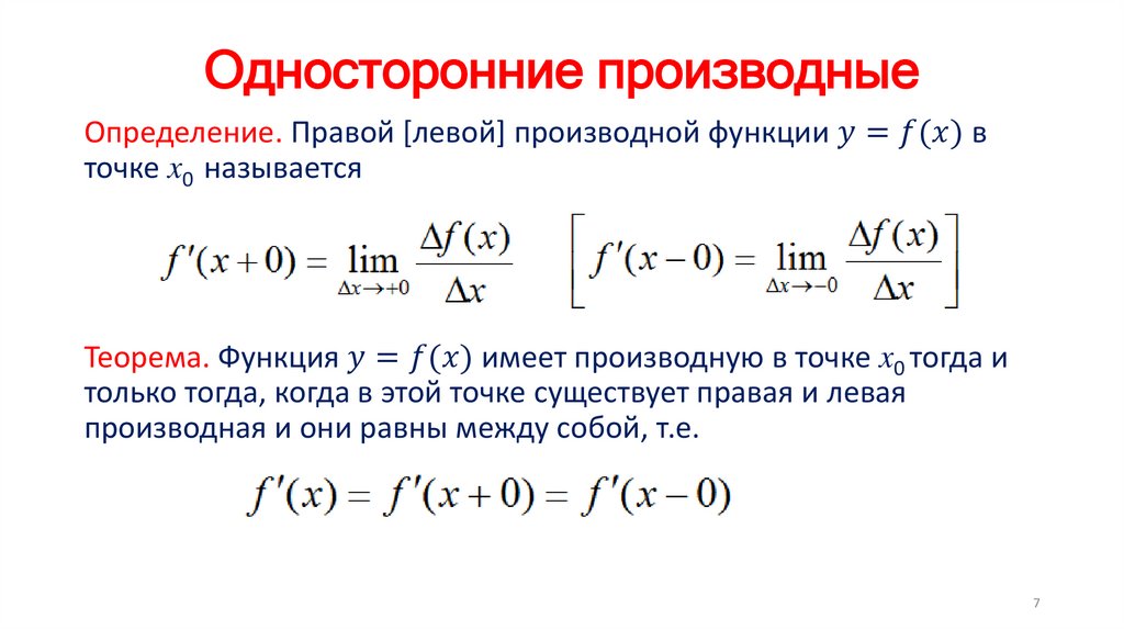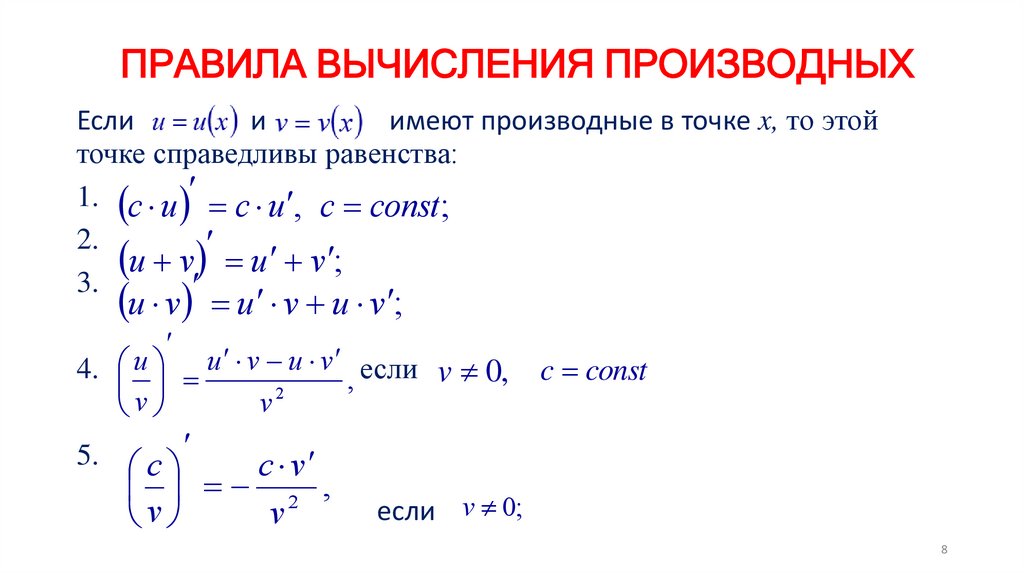 Математический анализ. Лекция №8. Производная функции одной переменной