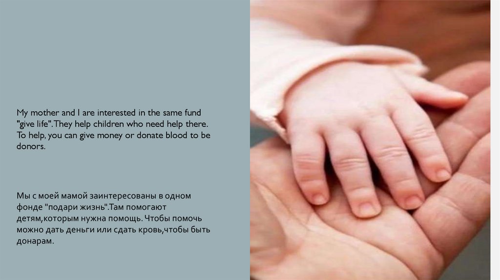 Меня зовут Полина .Мне 13 лет. Я занимаюсьблаготворительностью со своей мамой. Нам с