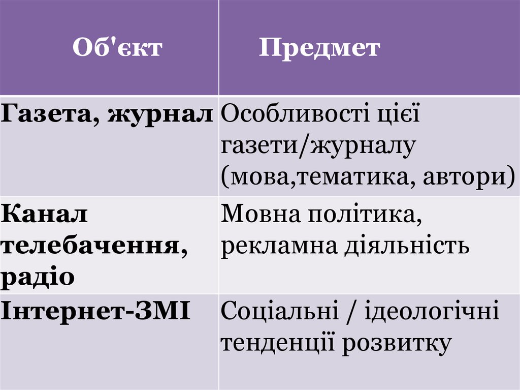 19. Предмет дослідження