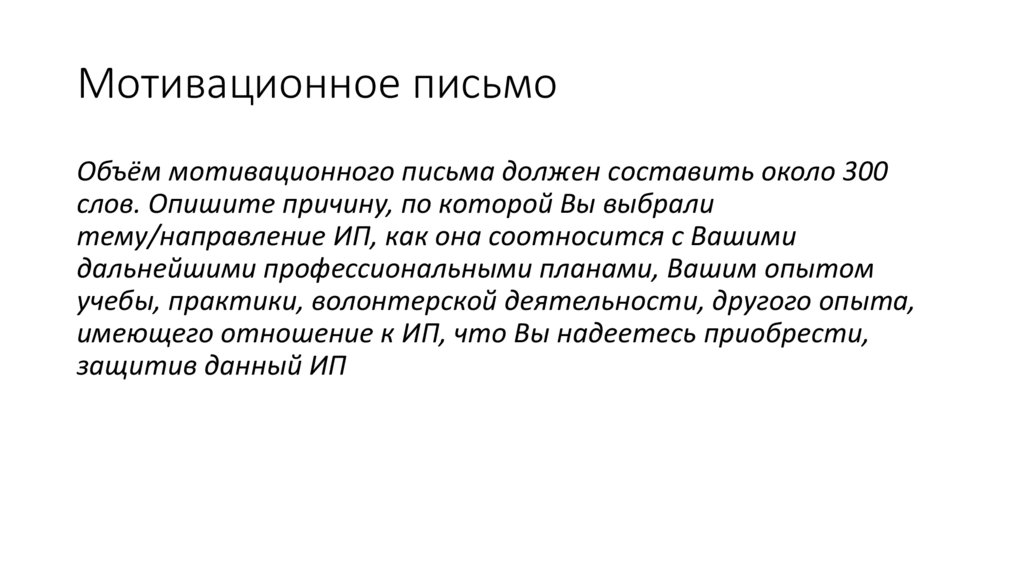 Мотивационное письмоОбъём мотивационного письма должен составить около 300
