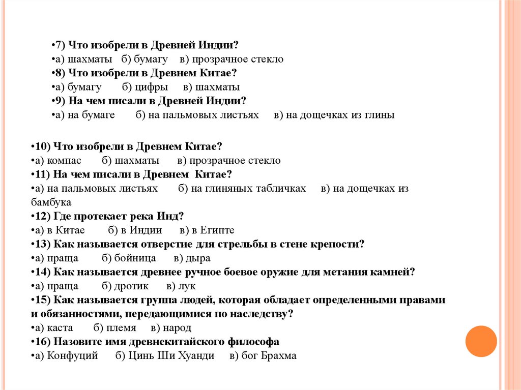 •7) Что изобрели в Древней Индии?•а) шахматы б) бумагу в) прозрачное стекло