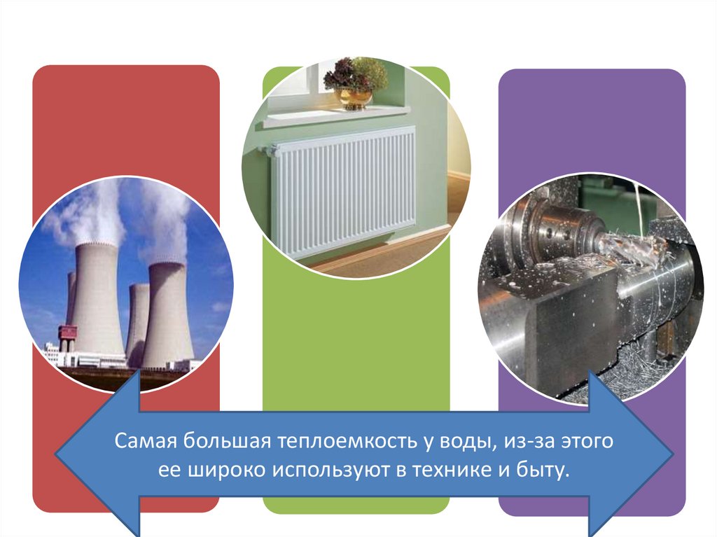 Самая большая теплоемкость у воды, из-за этогоее широко используют в технике и быту.