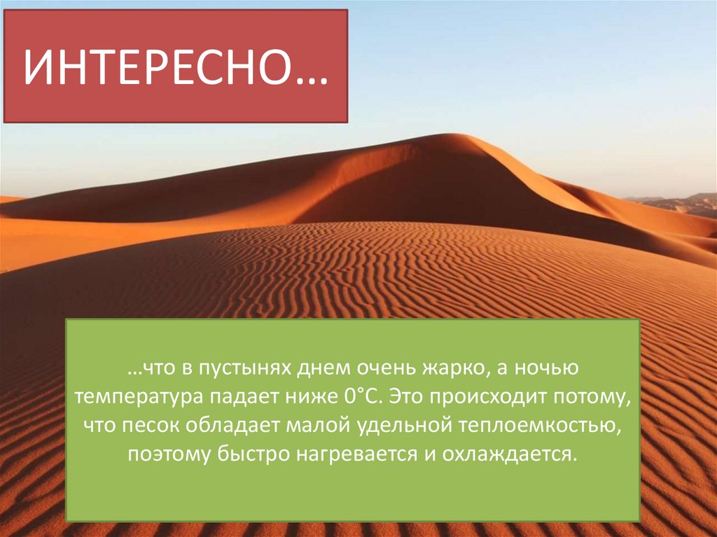 ИНТЕРЕСНО……что в пустынях днем очень жарко, а ночью