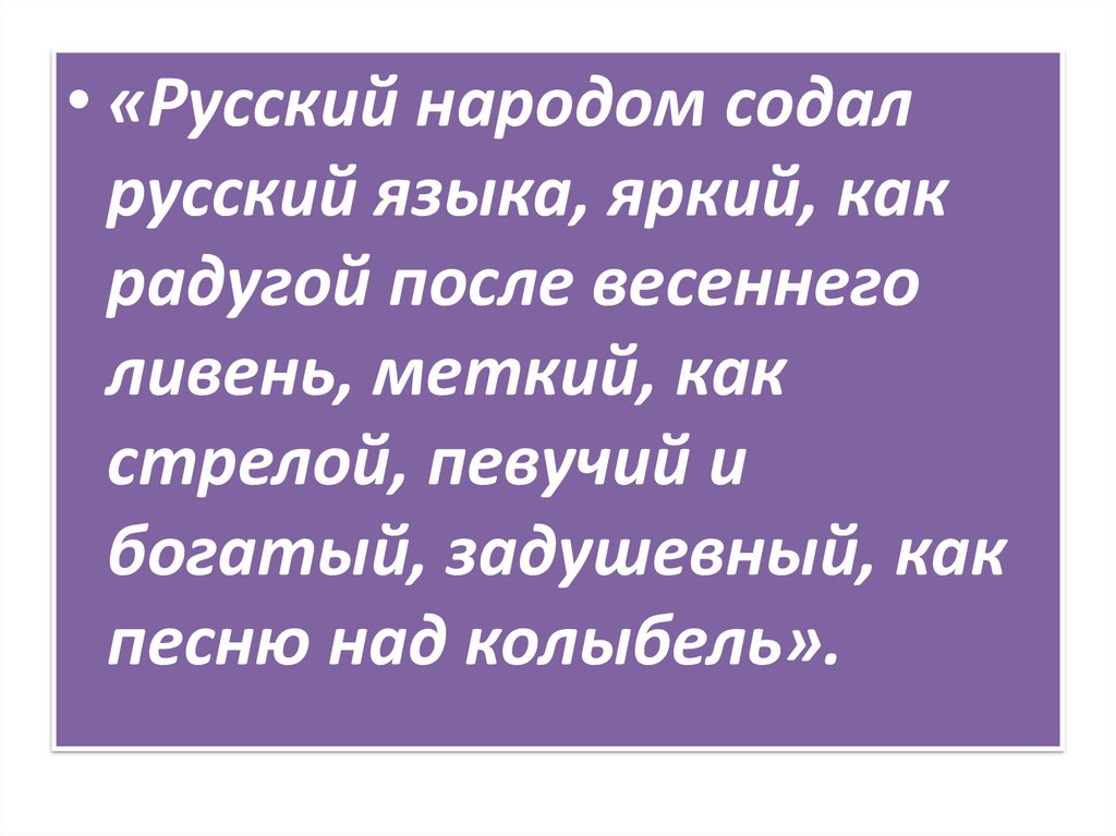 • «Русский народ создал русскийязык, яркий, как радуга после