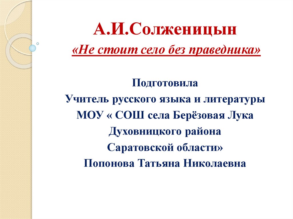 А.И.Солженицын «Матрёнин двор»Под моими подошвами всю мою жизнь –