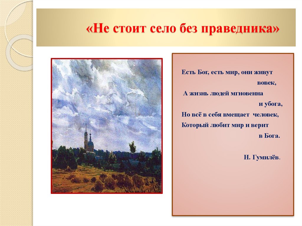 «Не стоит село без праведника»Есть Бог, есть мир, они живут