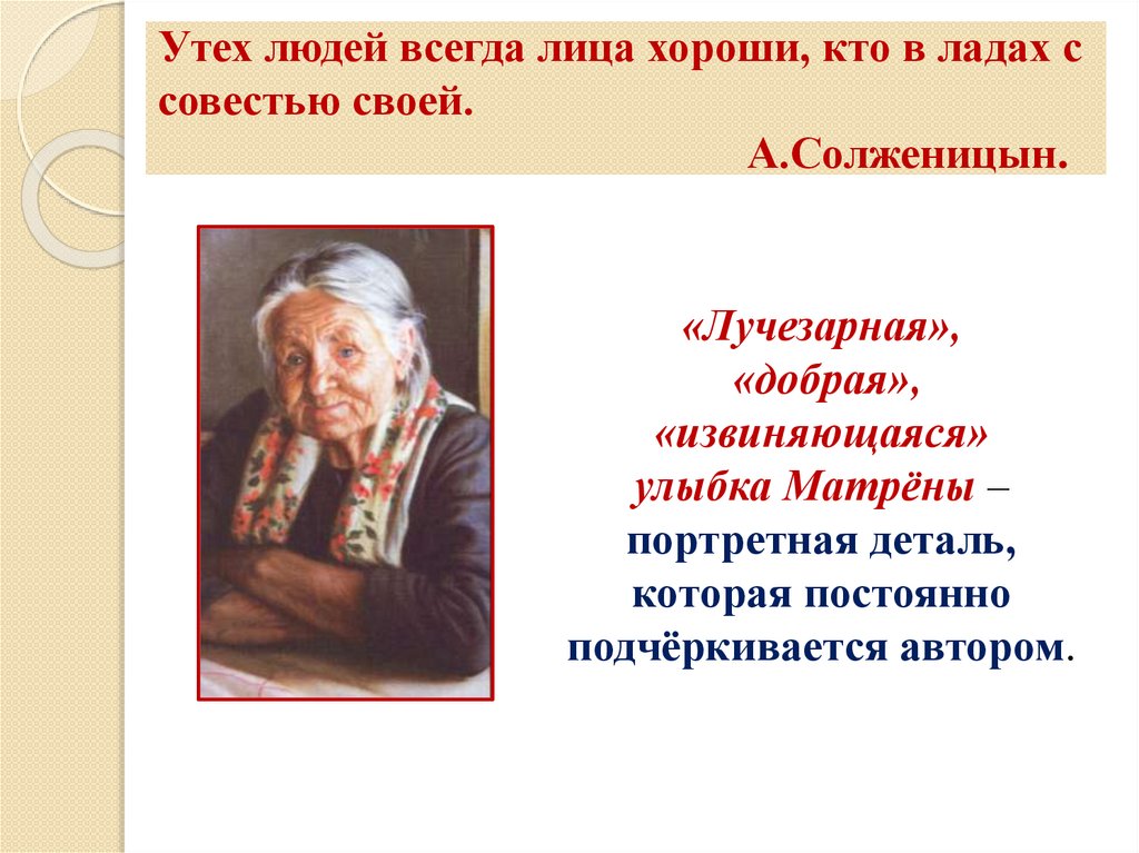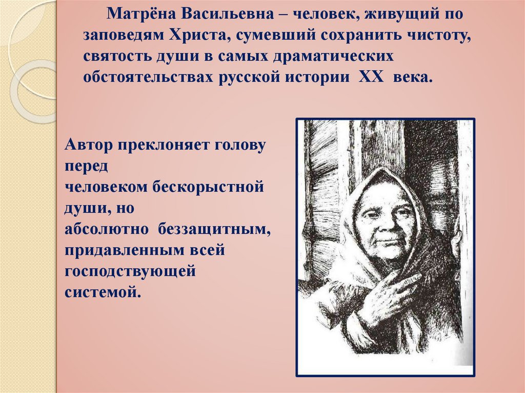 Матрёна Васильевна – человек, живущий позаповедям Христа, сумевший сохранить чистоту,