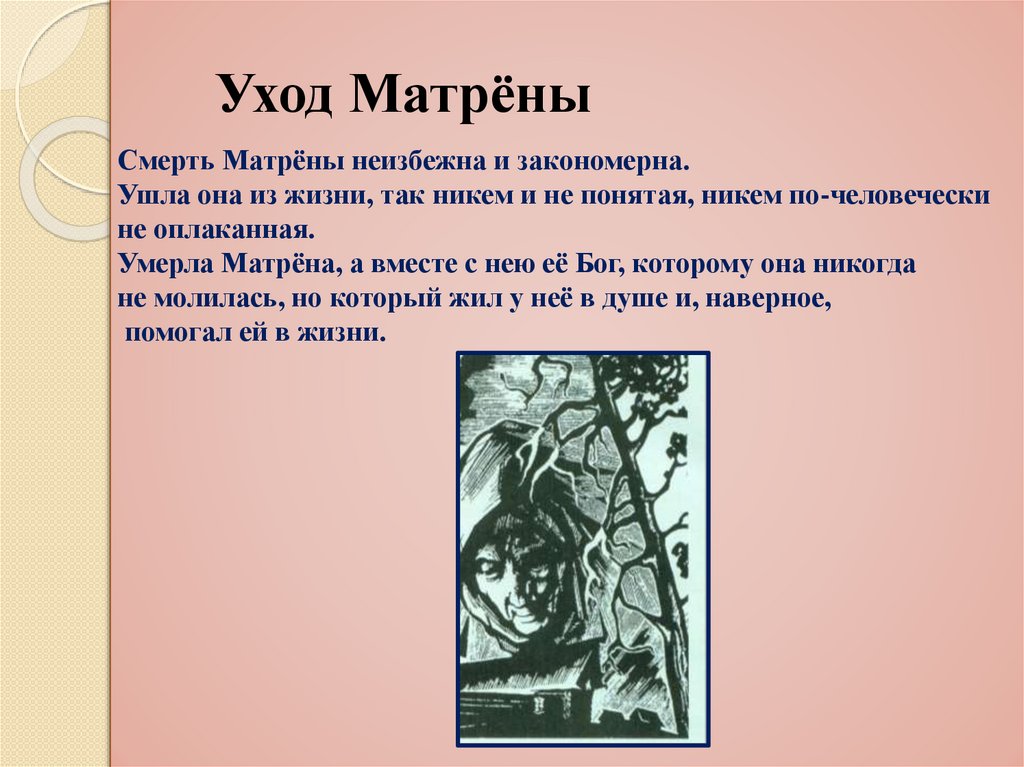 Уход МатрёныСмерть Матрёны неизбежна и закономерна.