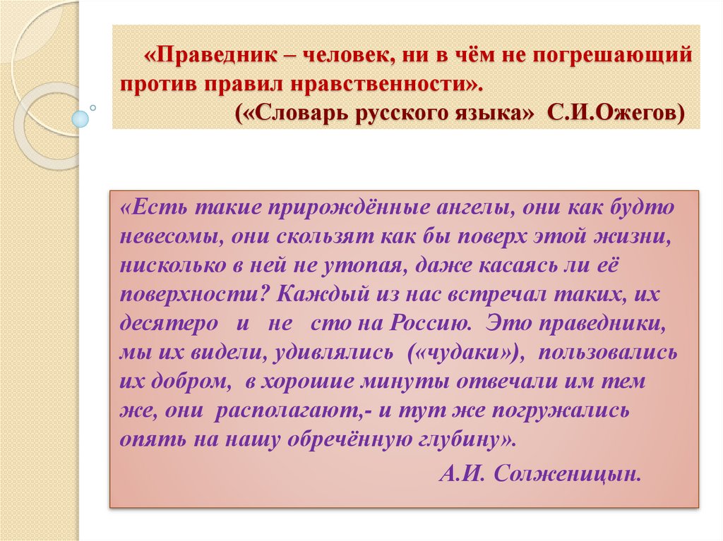 «Праведник – человек, ни в чём не погрешающийпротив правил нравственности».