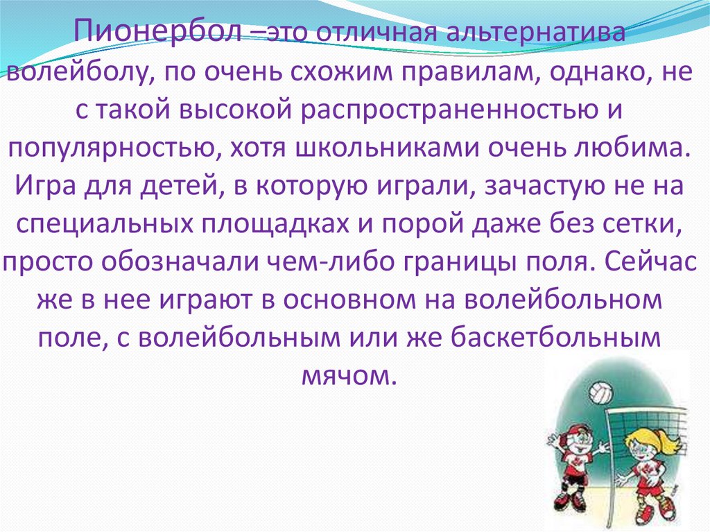 Пионербол –это отличная альтернативаволейболу, по очень схожим правилам, однако, не