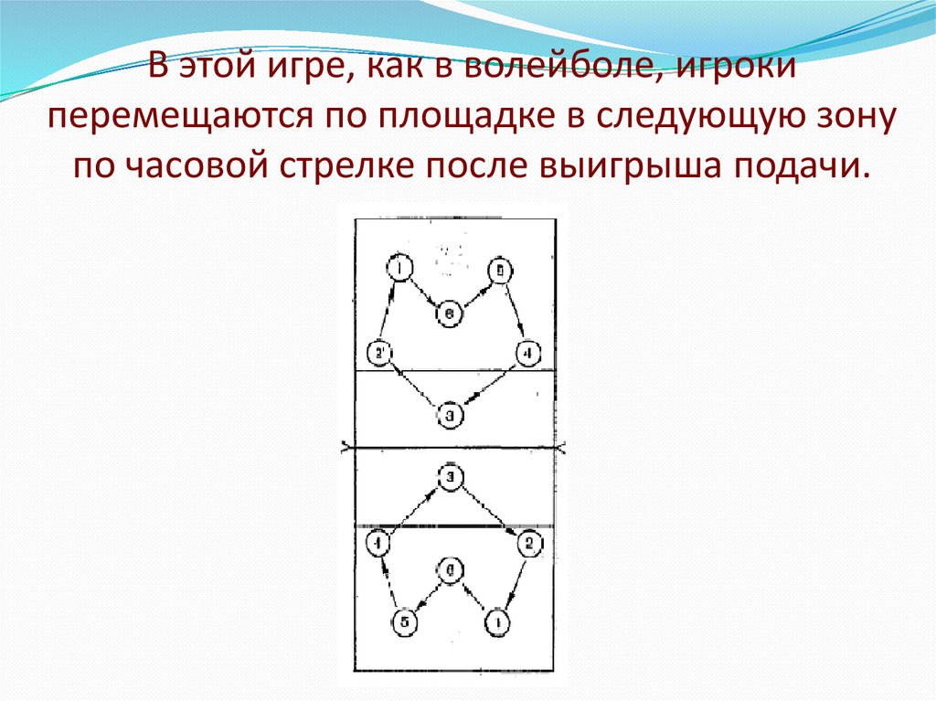 В этой игре, как в волейболе, игрокиперемещаются по площадке в следующую зону