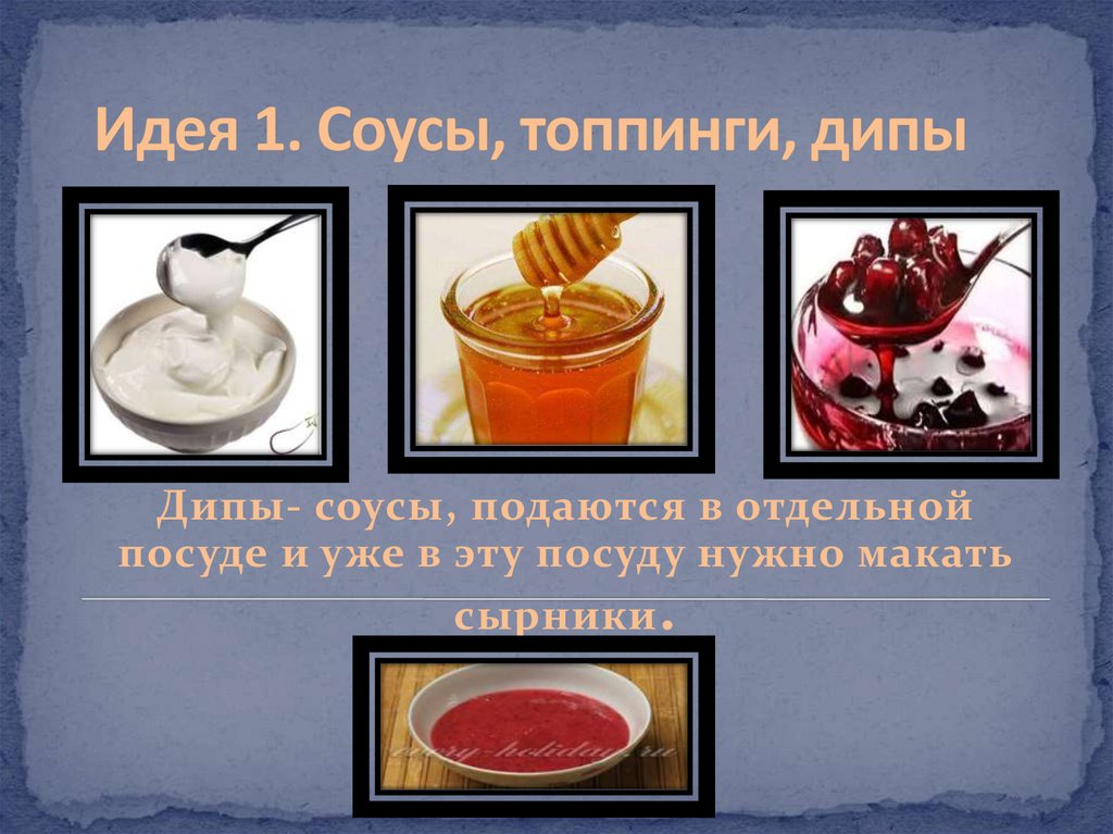 Дипы- соусы, подаются в отдельнойпосуде и уже в эту посуду нужно макать