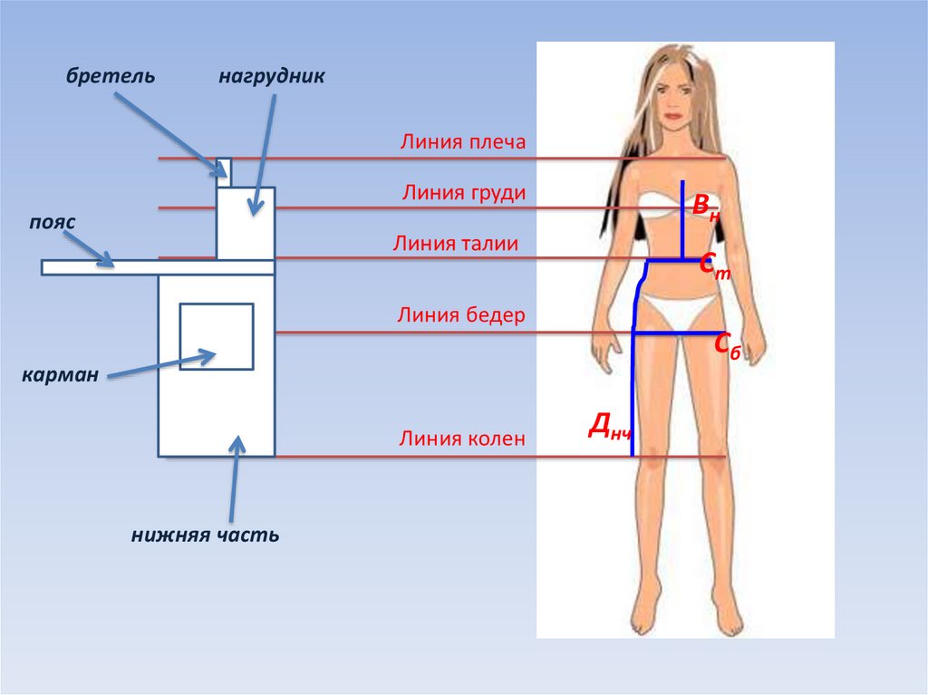 В – определение длины нижней части фартука;