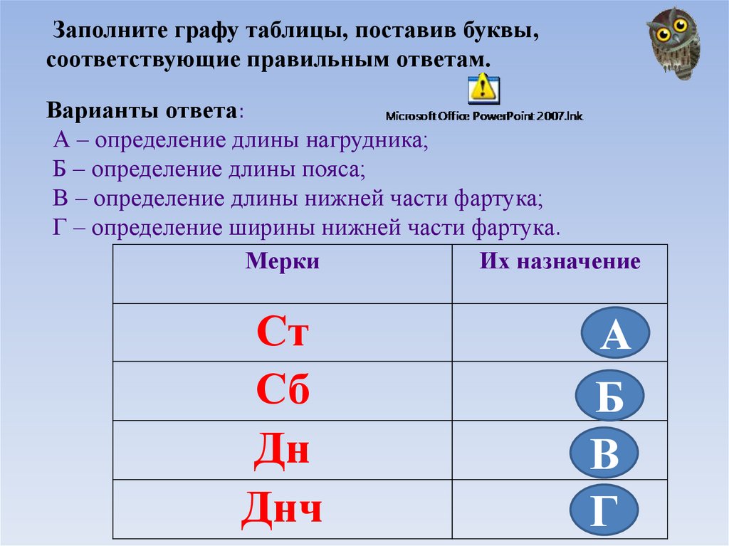 Заполните графу таблицы, поставив буквы,соответствующие правильным ответам.