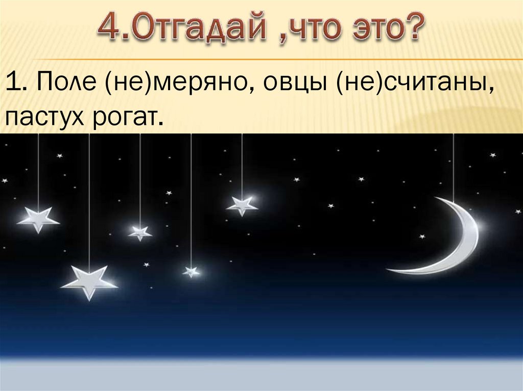 1. Поле (не)меряно, овцы (не)считаны,пастух рогат.